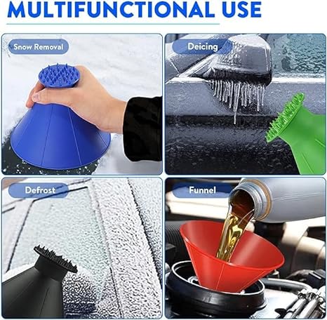 Not only does it have a good snow removal function, but also can be used as a funnel to easily add cleaning fluid to your car without spilling it everywhere. Just remove the tip of the snow removal tool and it will instantly become a funnel.